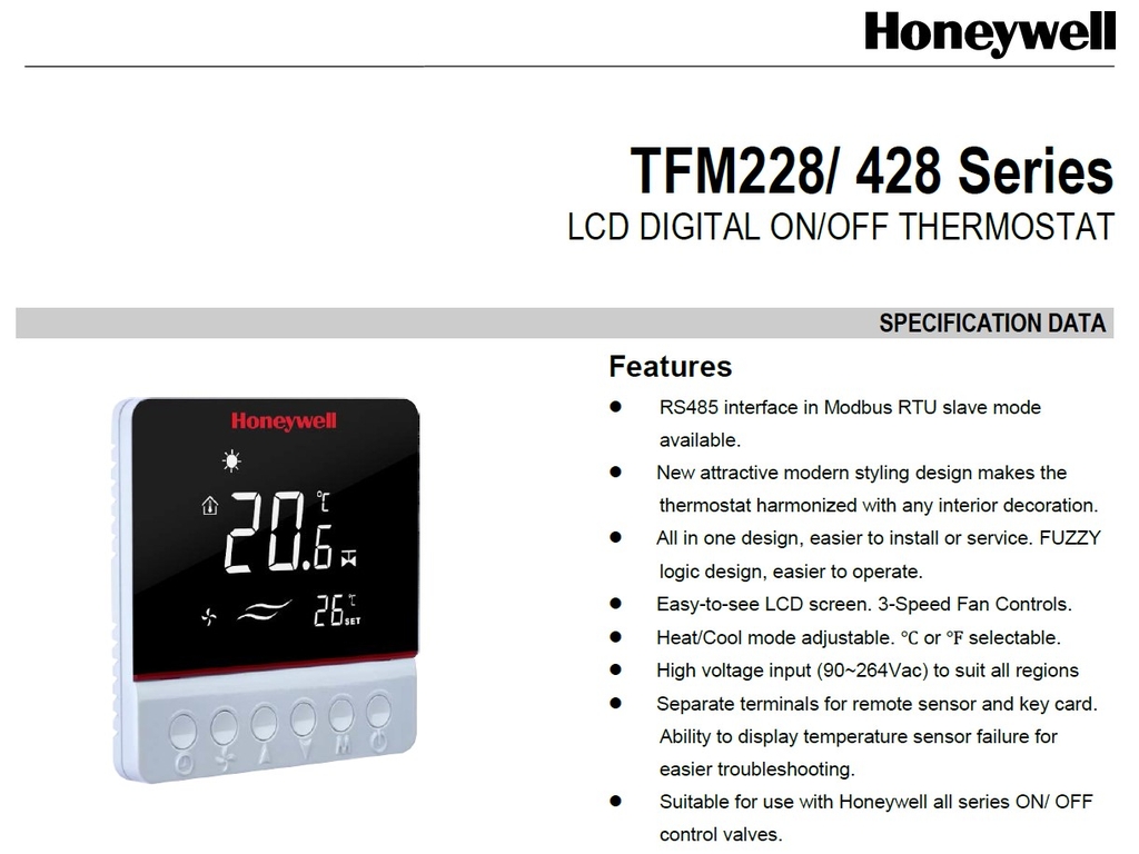 Được sản xuất bởi Honeywell – thương hiệu hàng đầu thế giới về thiết bị tự động hóa và HVAC, TFM428KN/U mang lại độ bền cao, vận hành ổn định và đáp ứng tiêu chuẩn quốc tế.