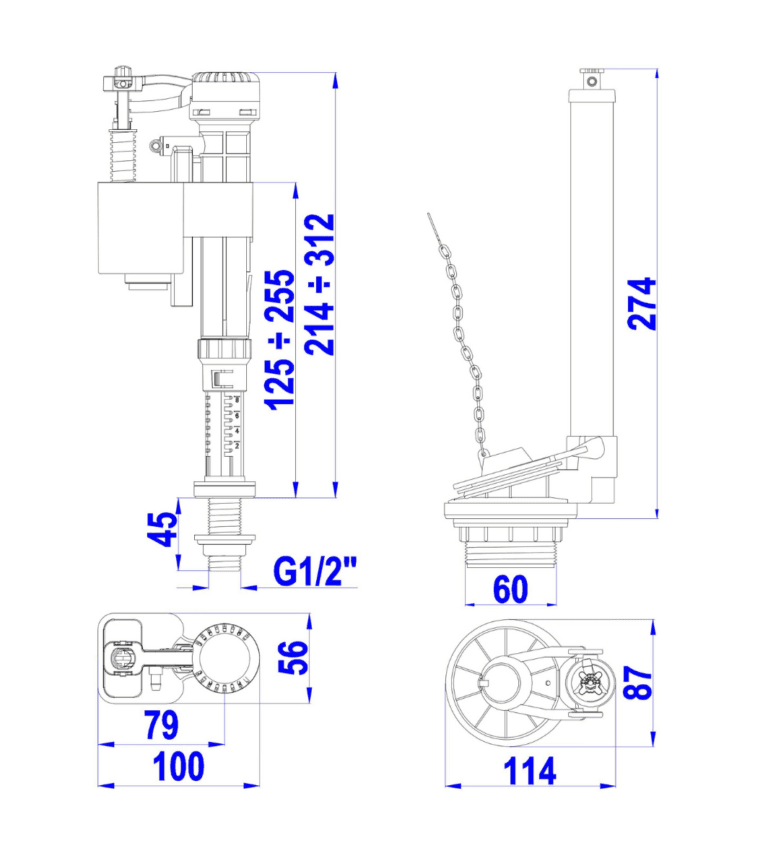 Thiết kế đòn bẩy và phao cơ khí tối ưu, giữ mực nước chính xác.