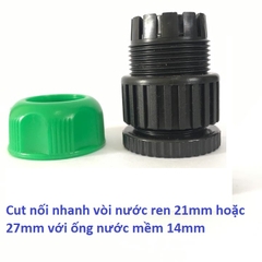 1 đầu gắn với ống mềm 14-16mm, có nắp vặn siết chặt chống rò rỉ nước.