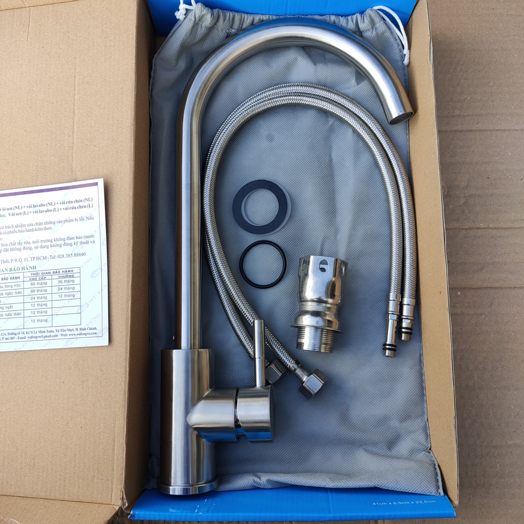 Ngoài ra, sản phẩm đi kèm dây cấp inox dài 60cm (6 tấc), đảm bảo khả năng lắp đặt nhanh chóng và độ bền cao theo thời gian.